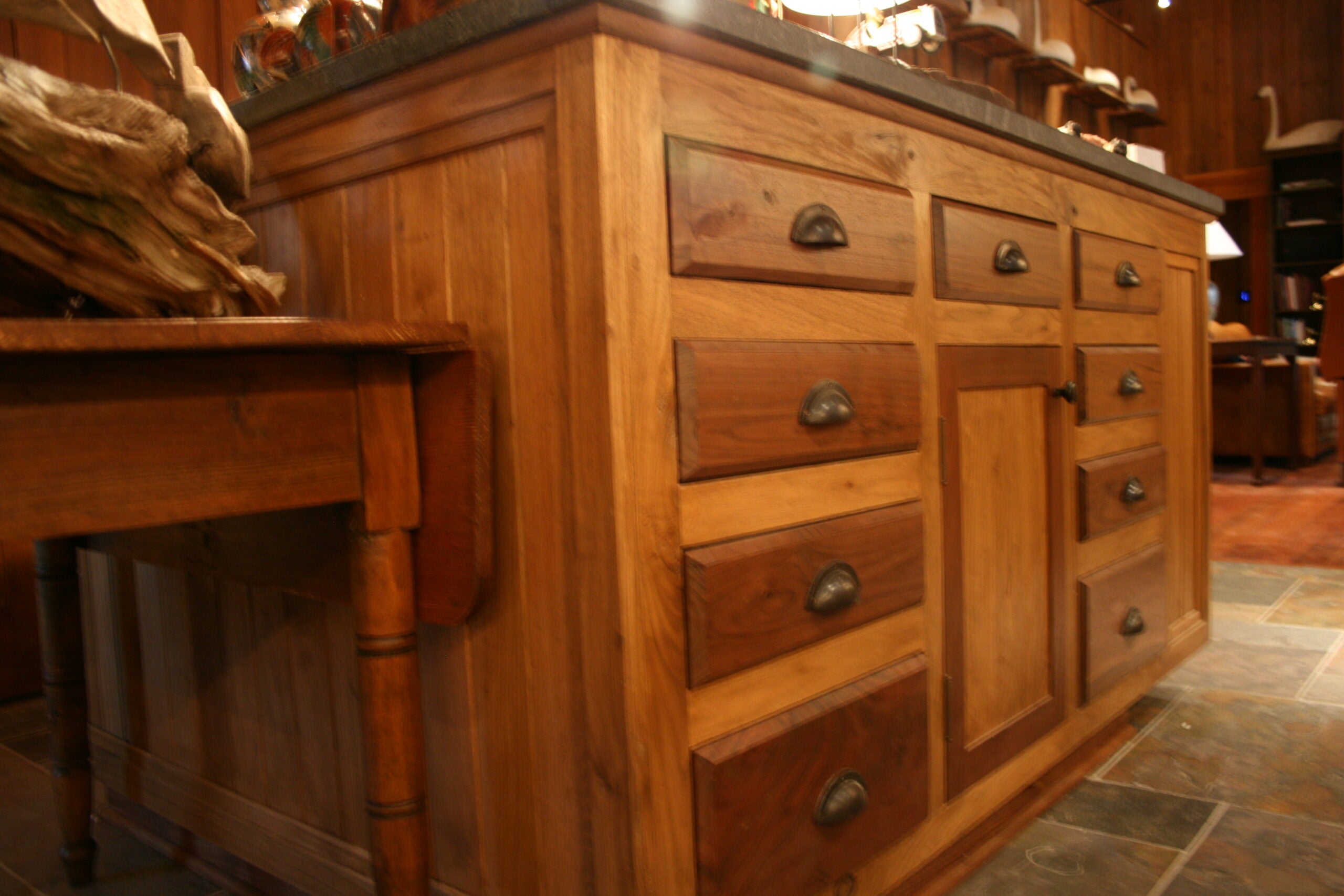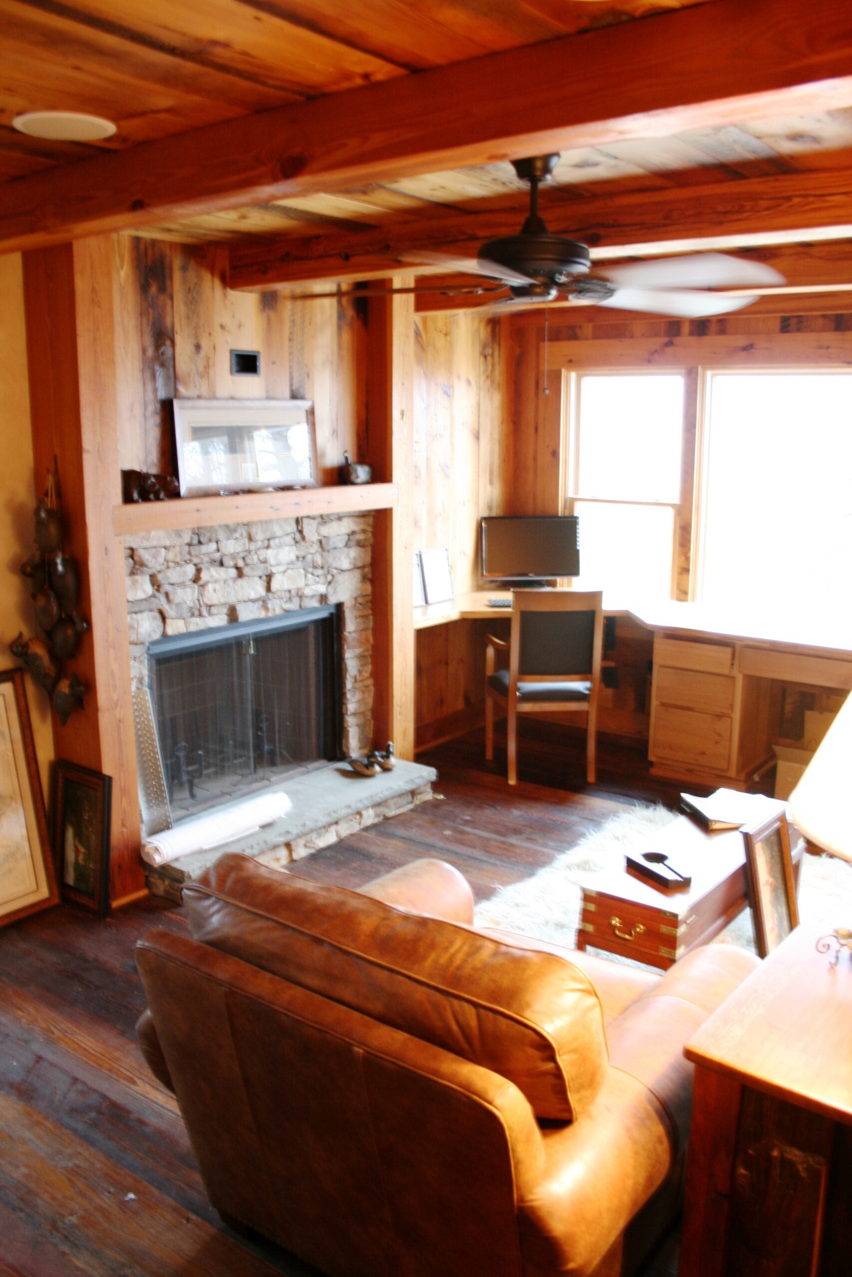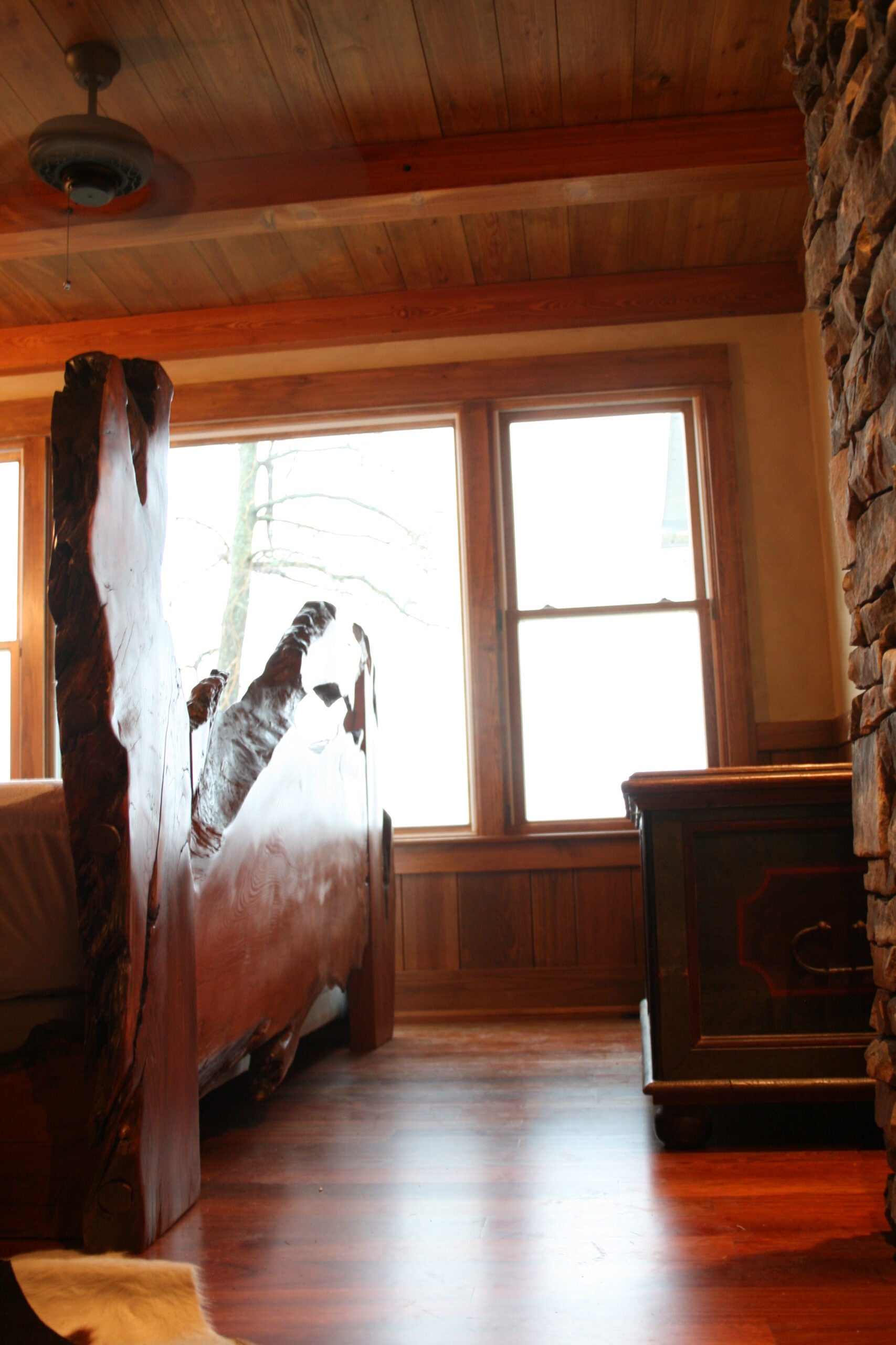 Wilson-Covington repaired and reconstructed all window frames, fabricated sash to match originals based on photographic evidence, and glazed in salvaged, “wavy” glass.